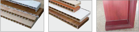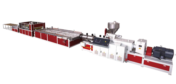 該生產線專用于PVC、PE、PP 木塑發泡門板、裝飾板擠出生產。生產線具有產量大,擠出穩定,發泡倍率高等優點。可生產各種裝 飾類制品,用途廣泛。制品表面硬度高,光滑平整,比重可控制在 0.6-0.9kg/m3之間。