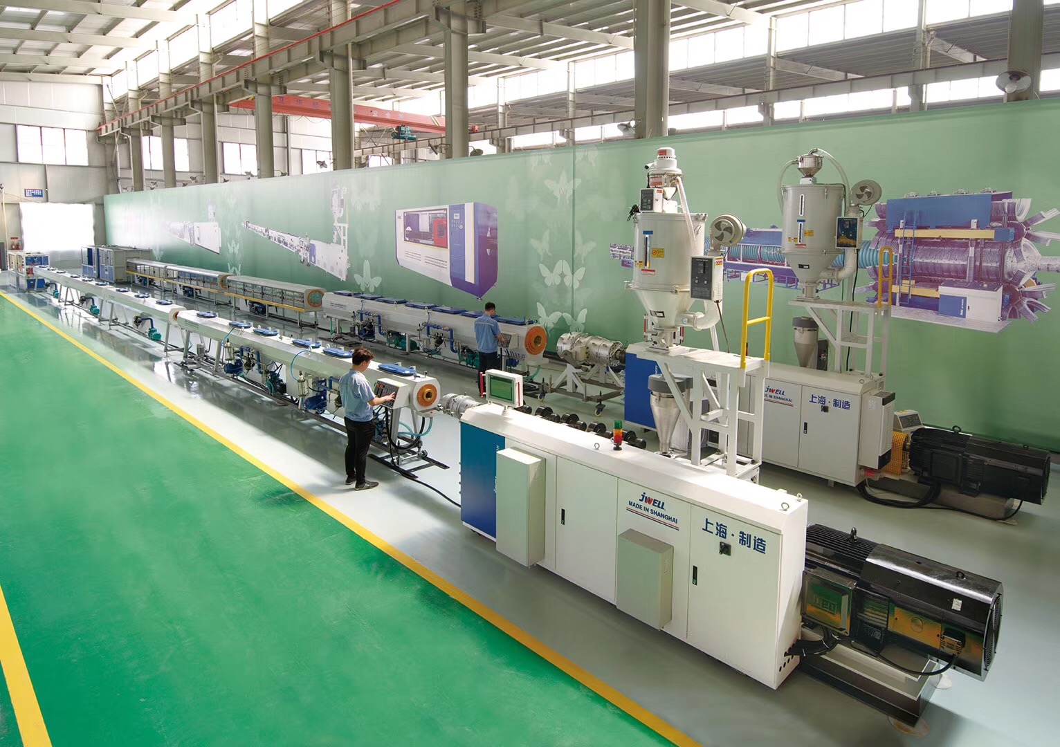金緯機械自主研發(fā)的新一代MPP電力管生產(chǎn)線,采用歐洲先進技術(shù),新研制開發(fā)的節(jié)能高速擠出生產(chǎn)線。其優(yōu)點如下: