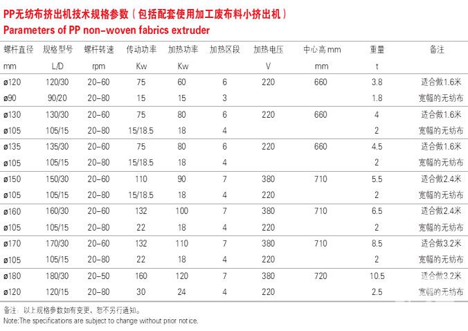 JWM系列PP無紡布螺桿擠出機主要用于紡粘法PP無紡布料的擠出生產。 該擠出機一般為兩臺擠出機串聯擠出,