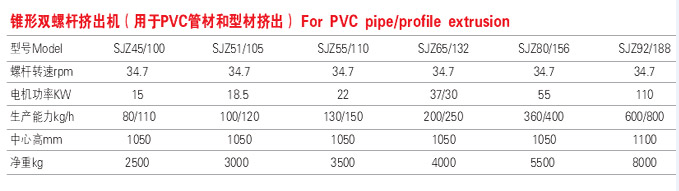 本公司生產(chǎn)的SJZ各系列異向錐形雙螺桿擠出機(jī),主要用來生產(chǎn)加工PVC管材和型材產(chǎn)品,具有產(chǎn)量高,塑化好, 節(jié)能降耗,運(yùn)行平穩(wěn)等顯著特點(diǎn),電氣控制配置先進(jìn),可以按照客戶的要求選擇電腦柜或儀表柜等;
